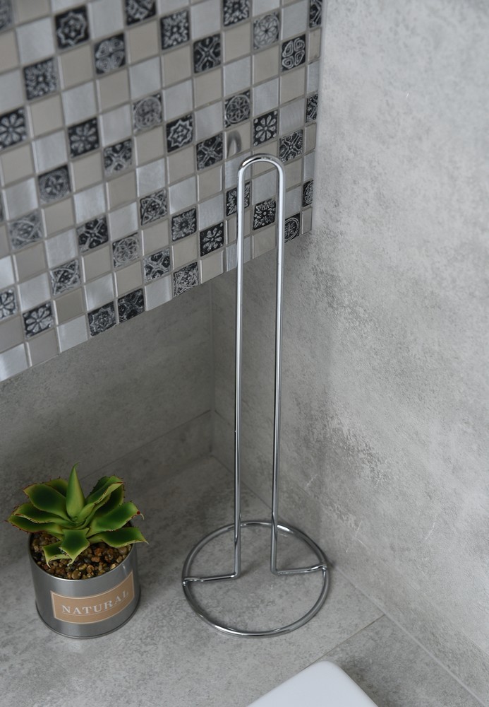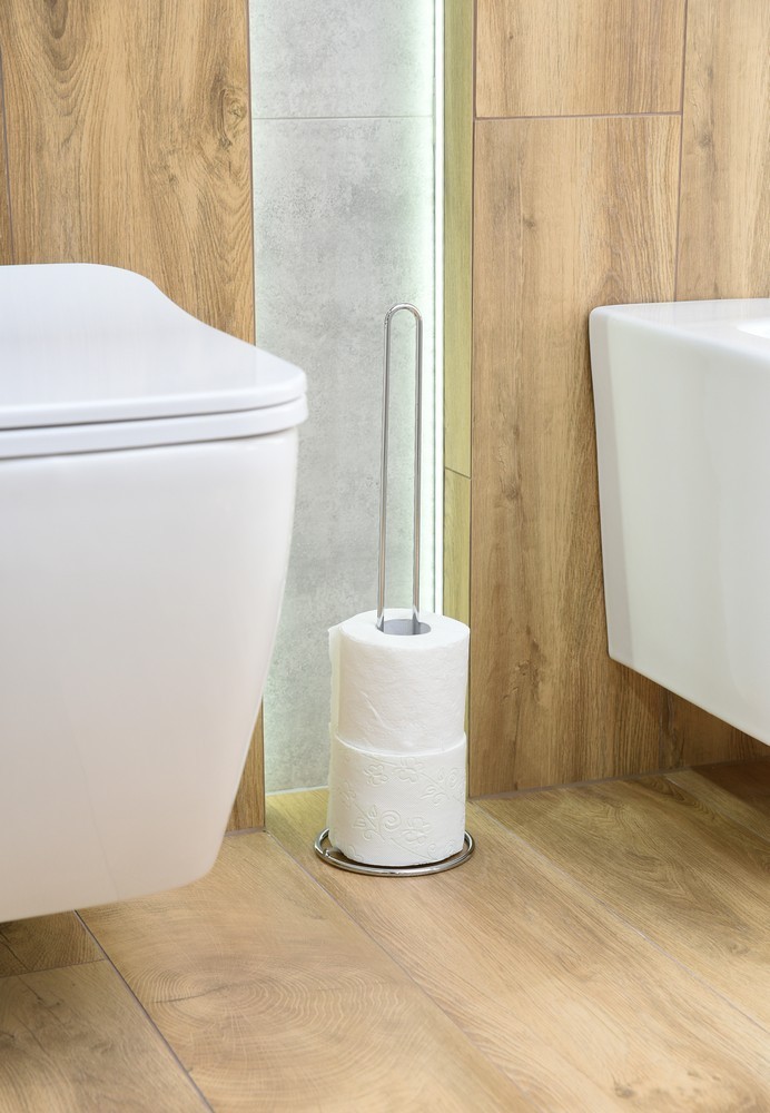 Obľúbený, drôtený držiak toaletného papiera z chrómovanej ocele. Celkom pojme 5 náhradných roliek toaletného papiera.