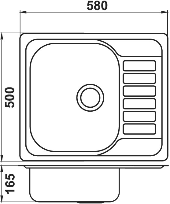 Vonkajší rozmer 50x58 cm a hĺbka 16,5 cm. Kuchynský drez s prepadom as odkvapovou plochou. Súčasťou balenia je sifón NSP51. Predĺžená záruka 5 rokov.(GT)