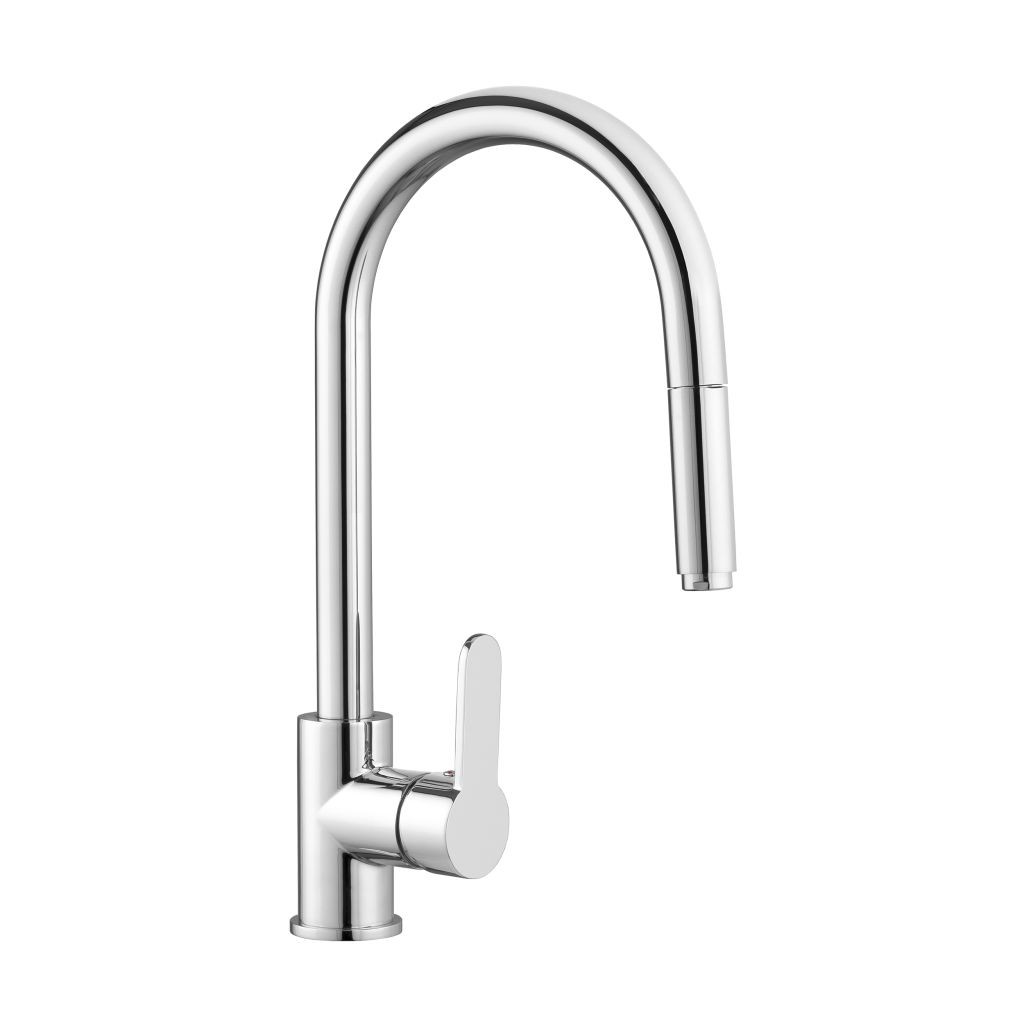 Kuchynská batéria Elia je moderný model s výsuvným dvojfunkčným výtokom. Batérie je vybavená silikónovým perlátorom šetriacim vodu a odolnú keramickou kartušou, ktorá zaručuje plnú funkčnosť a pohodlie pri používaní. K dispozícii v dvoch farbách: chróm a čierna.