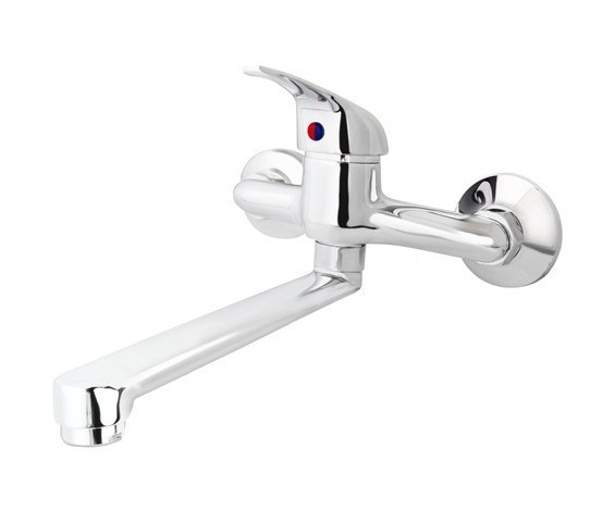Drezová batéria EOS -14 s praktickým dlhým ramienkom. Nástenná kuchynská batéria s kvalitnou keramickou kartušou, ktorá zaisťuje dlhú životnosť. Drezové batérie zo série EOS majú rozstup 150 mm. Tradičný dizajn a lesklý pochrómovaný povrch sa hodí do každej kuchyne.