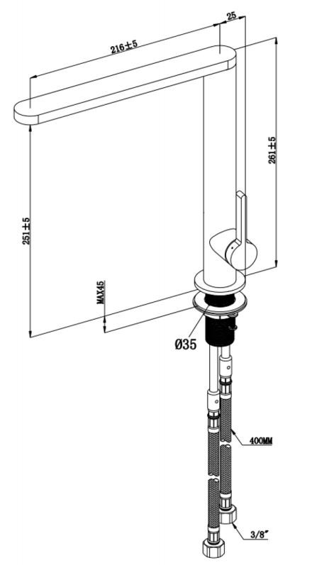- Flexibilná pripojovacia hadica, dĺžka 600 mm