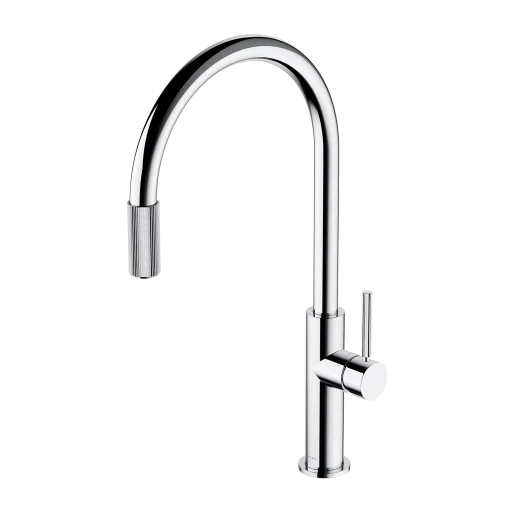 Kuchynská batéria OMNIRES SWITCH kombinuje minimalistický dizajn založený na vyvážených proporciách s praktickou funkčnosťou, poskytuje bežnú a filtrovanú vodu. Výrazné, precízne rebrované detaily umožňujú intuitívne použitie tým, že označujú dva nezávislé body otvorenia vody: bežnú vodu a filtrovanú vodu na konci výtoku – stačí otočiť krúžkom a pohár naplniť rýchlym prúdom pitnej vody.