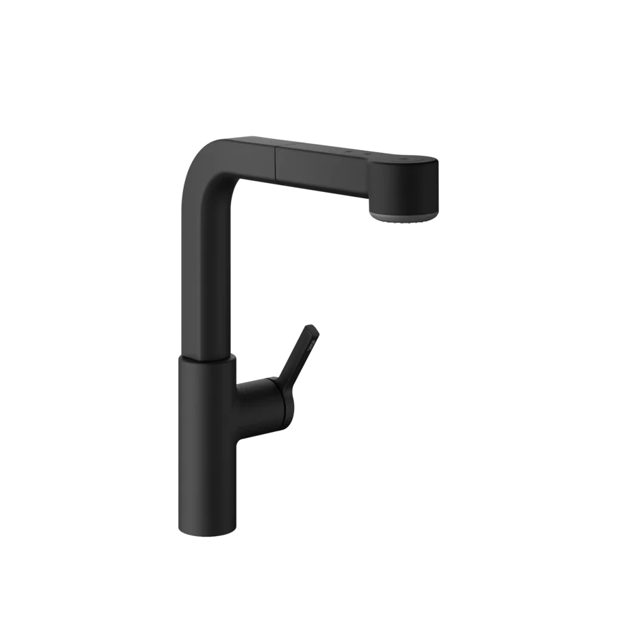 Drezová páková batéria s výsuvnou koncovkou a prepínaním sily prúdu v 3 stupňoch, čierna Matt Black, materiál mosadz, kartuša s keramickým diskom, typ 125374, 10.461.002.176FL