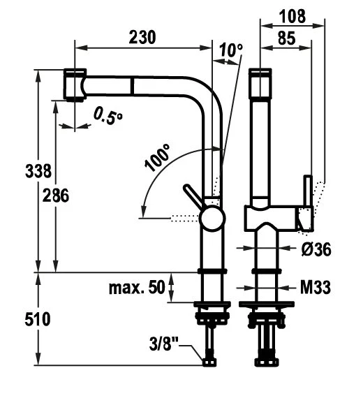 - Maximálny prietok: 8 l/min., sprcha 7,2 l/min. (3 bary)