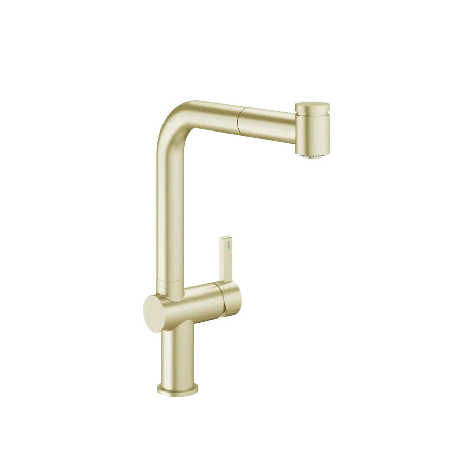 Drezová páková batéria s výsuvnou koncovkou a prepínaním sily prúdu, farba zlatá Brushed Gold, materiál masívny nerez, kartuša s keramickým diskom, typ 3600018040, 10.531.003.775FL