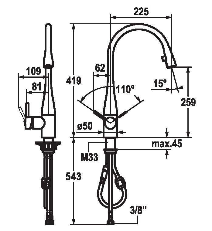 - Montáž: jednootvorová (priemer otvoru 35 mm)