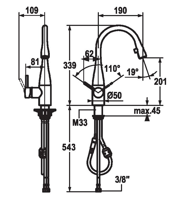- Montáž: jednootvorová (priemer otvoru 35 mm)