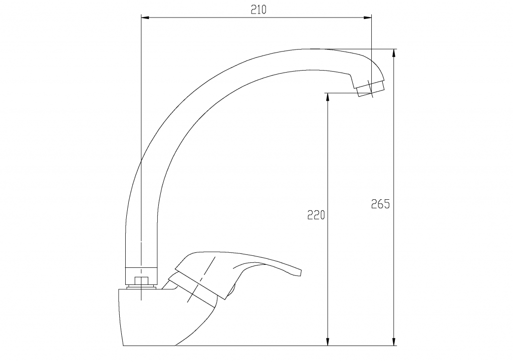 - dosah výtoku u tejto batérie je 210 mm, výška batérie je 265 mm a výška výtoku je 220 mm