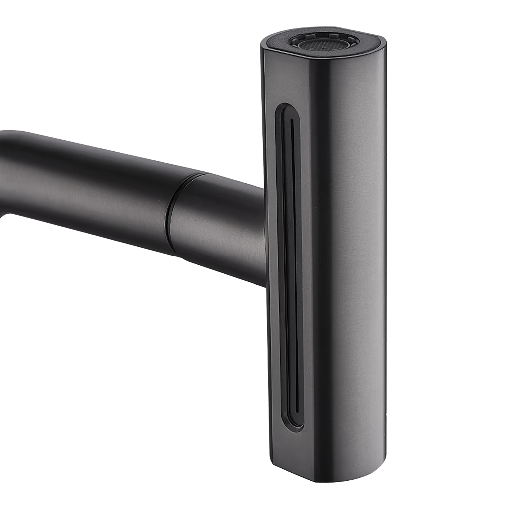Kuchynská batéria Nelia od značky Invena je štýlovým a praktickým doplnkom každej modernej kuchyne. Vďaka výsuvnému výtoku so štyrmi funkciami – normálny prúd, vodopád, sprcha a sprchový prúd – poskytuje maximálnu flexibilitu a komfort pri používaní. Otočný výtok o 360 ° zaisťuje pohodlný prístup do celého drezu, čo výrazne uľahčuje umývanie riadu aj potravín.