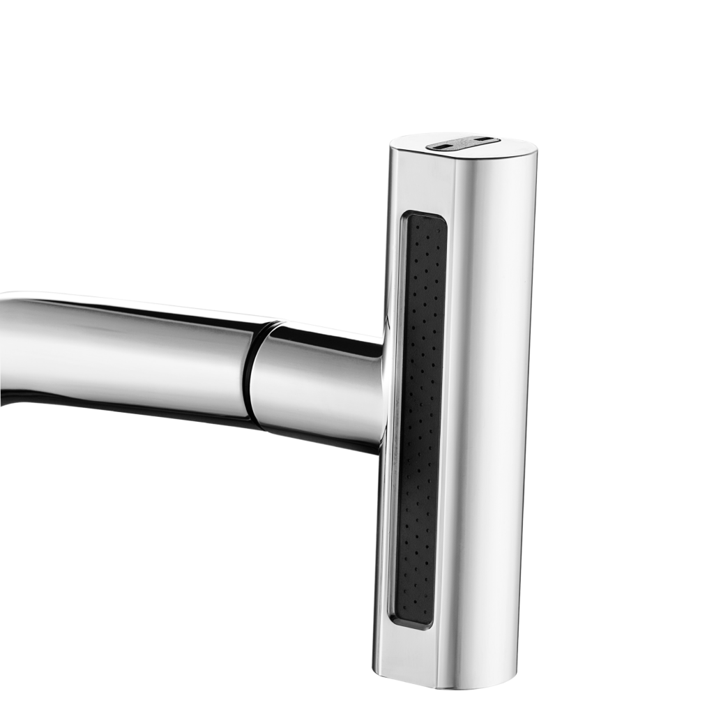 Kuchynská batéria Nelia od značky Invena je štýlovým a praktickým doplnkom každej modernej kuchyne. Vďaka výsuvnému výtoku so štyrmi funkciami – normálny prúd, vodopád, sprcha a sprchový prúd – poskytuje maximálnu flexibilitu a komfort pri používaní. Otočný výtok o 360 ° zaisťuje pohodlný prístup do celého drezu, čo výrazne uľahčuje umývanie riadu aj potravín.