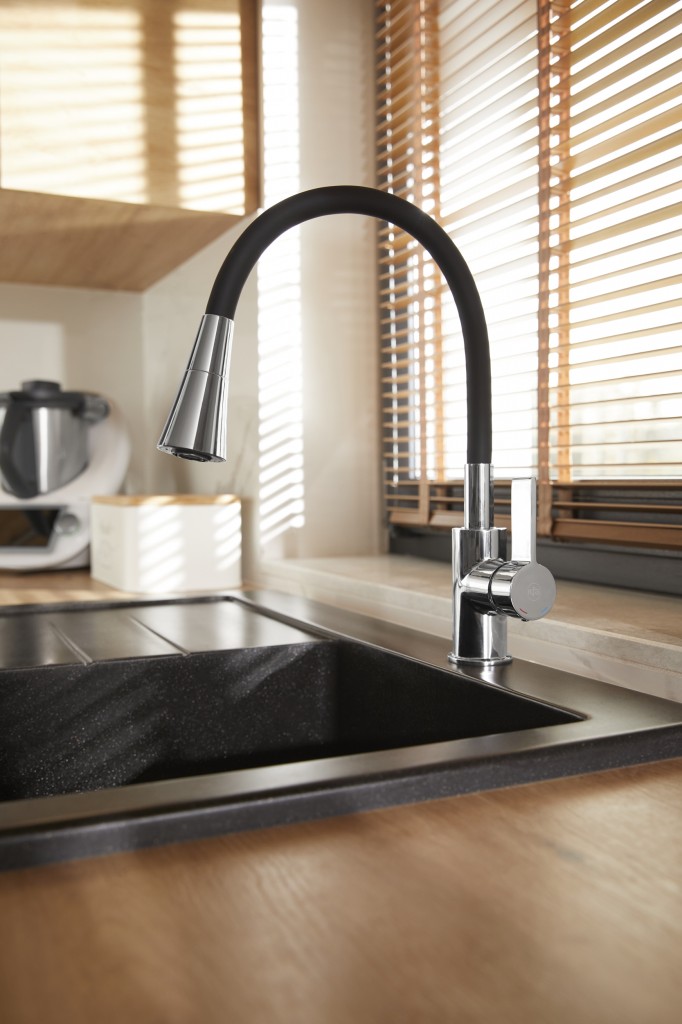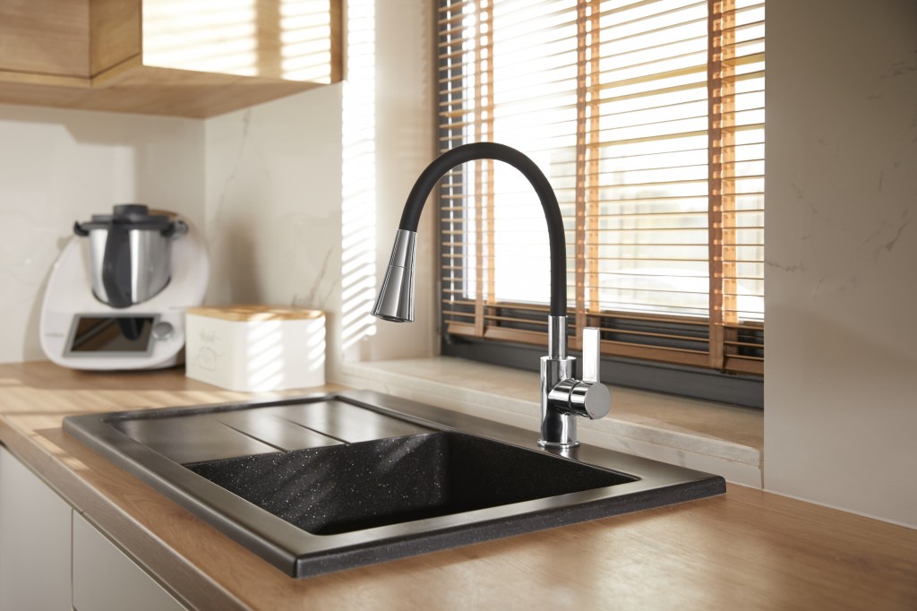 Zaveďte do svojej kuchyne moderné riešenie a maximálne pohodlie s kuchynskou batériou Rumba Duo . Jeho flexibilný výtok z odolných materiálov umožňuje ľubovoľne nasmerovať prúd vody, čo výrazne uľahčuje umývanie veľkého riadu, oplachovanie drezu a vykonávanie ďalších každodenných činností.