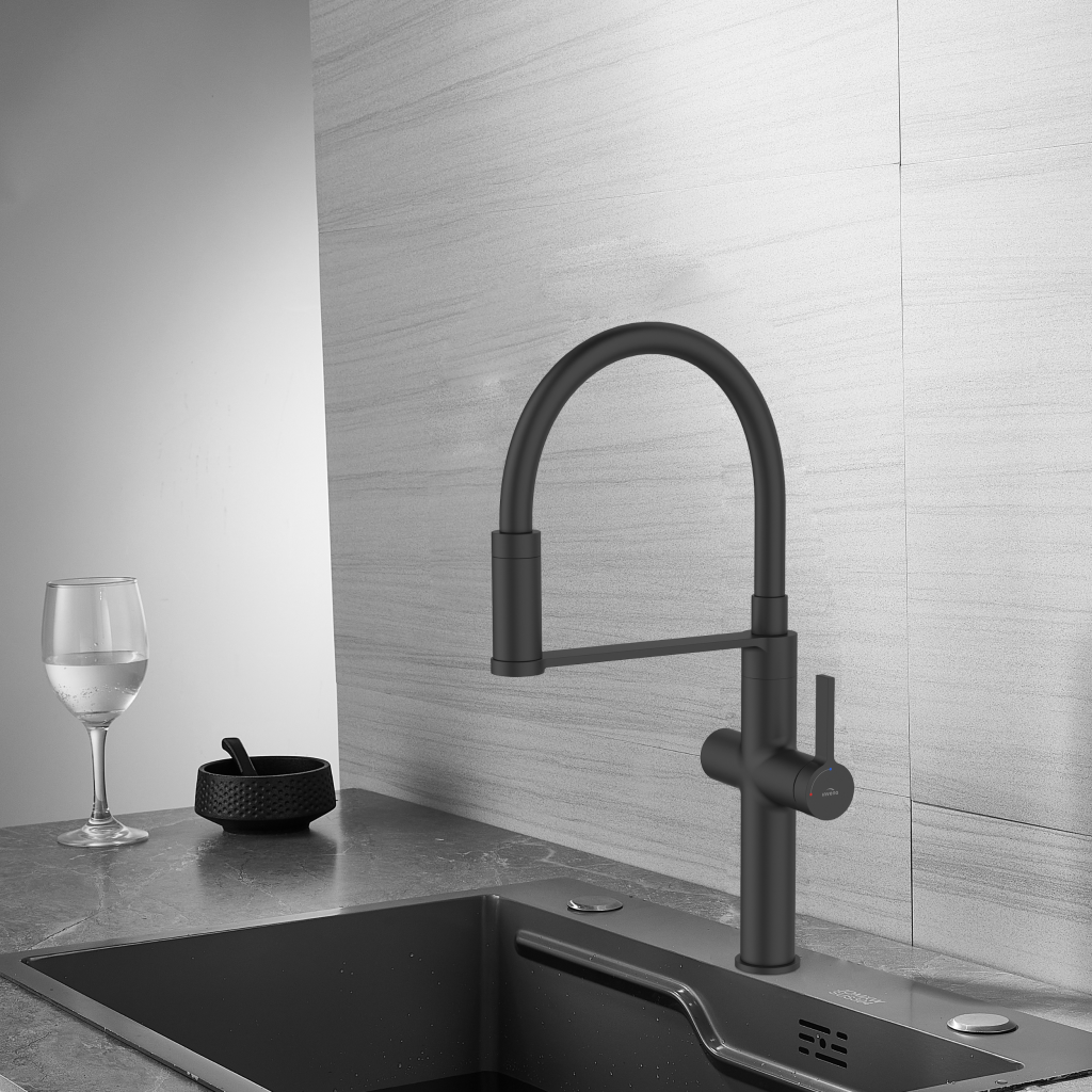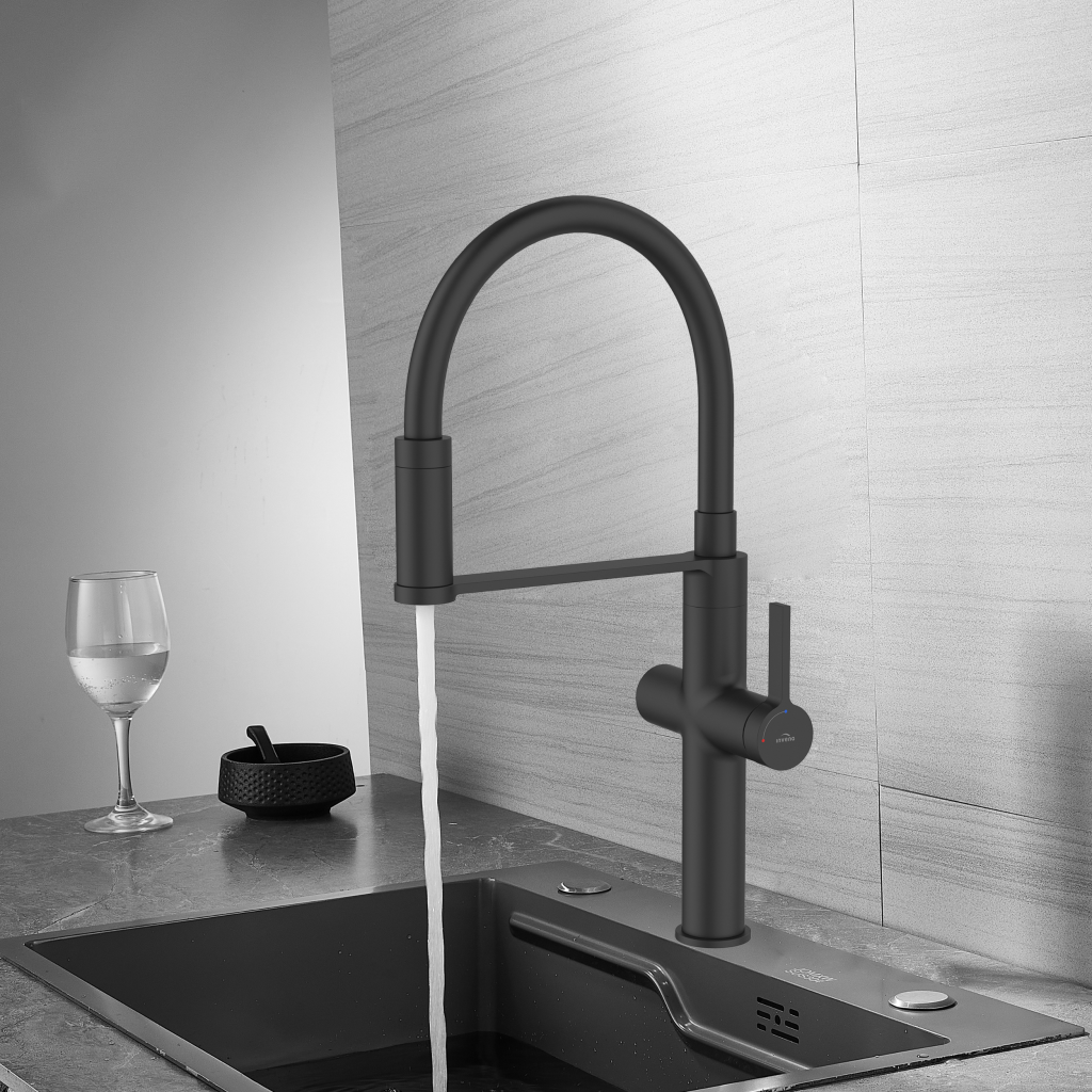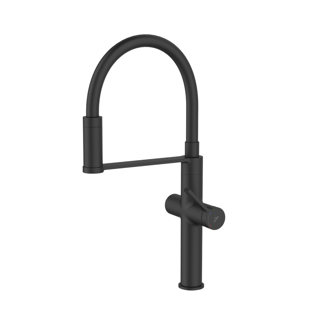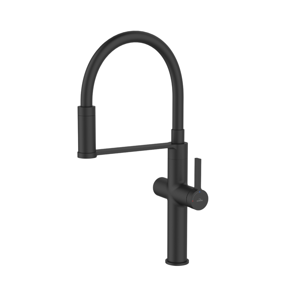 Štýlová kuchynská batéria PERISA v elegantnej matnej čiernej farbe spája moderný dizajn, pohodlné ovládanie a praktické riešenie filtrácie vody. Vďaka integrovanému uhlíkovému filtru získate čistú, chutnú vodu bez nutnosti kupovať balenú. Filter účinne odstraňuje chlór, pachy aj mechanické nečistoty a zlepšuje chuť vody.