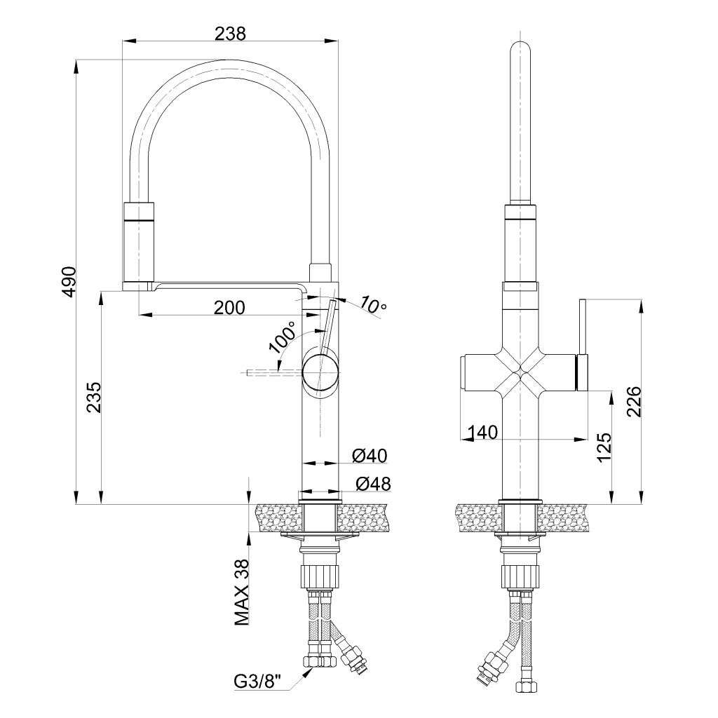 - Jednoduchá a rýchla inštalácia (vrátane pripojovacích hadíc 2× 3/8", 40 cm)