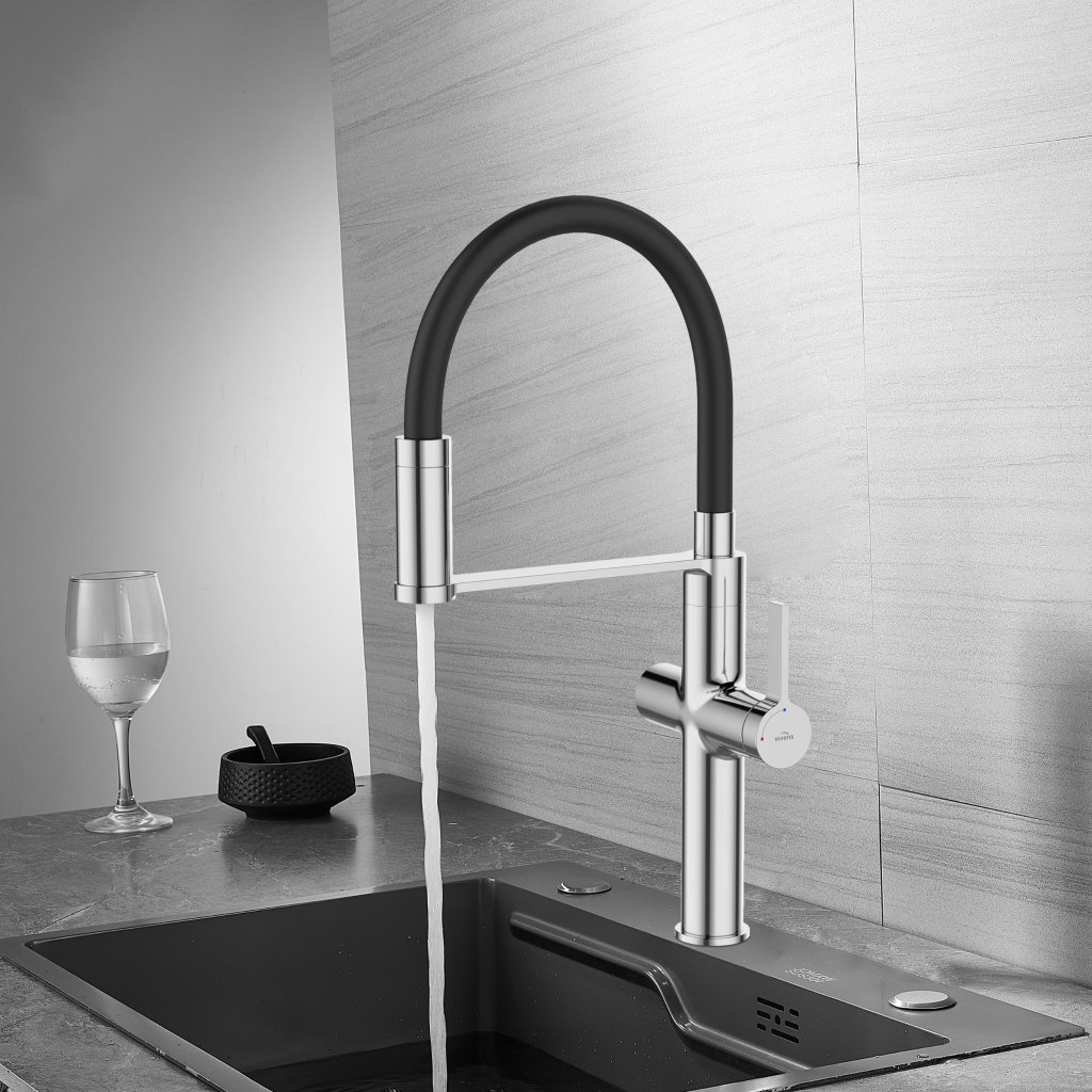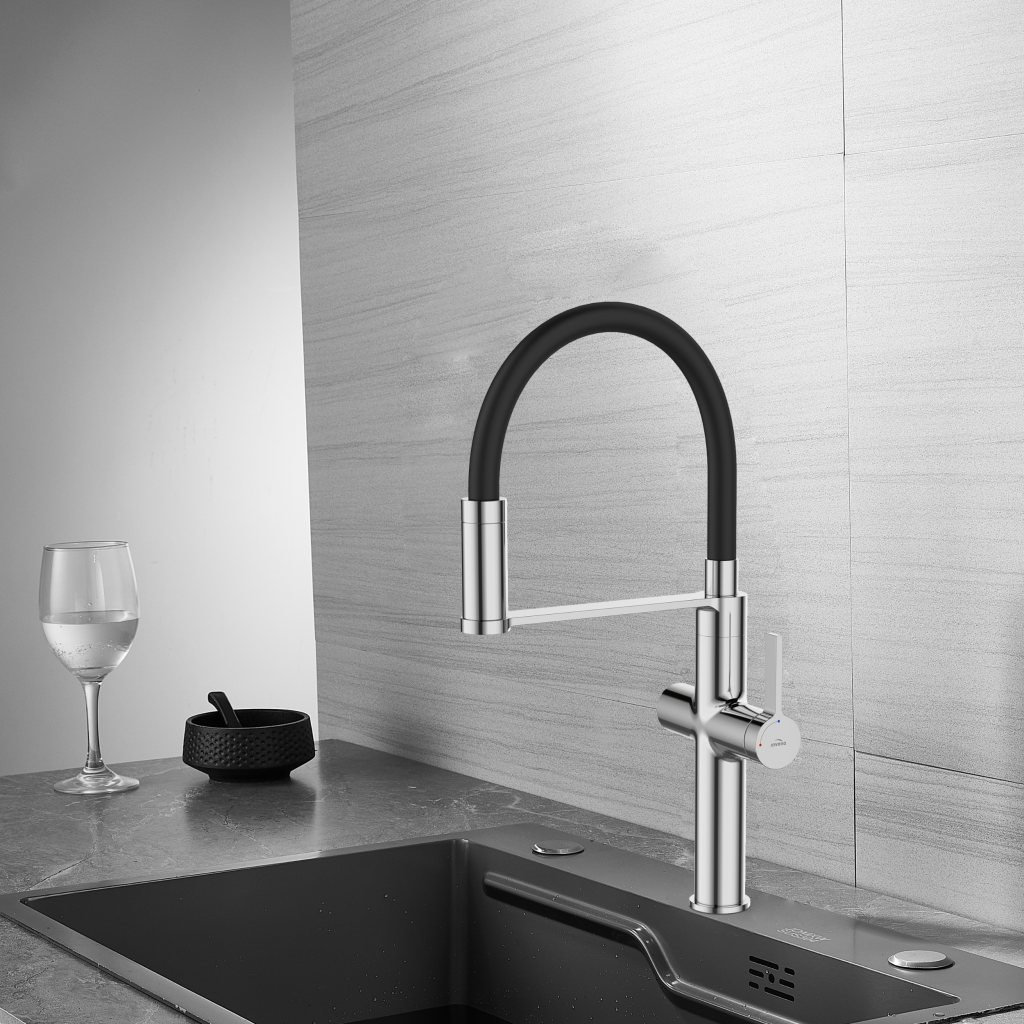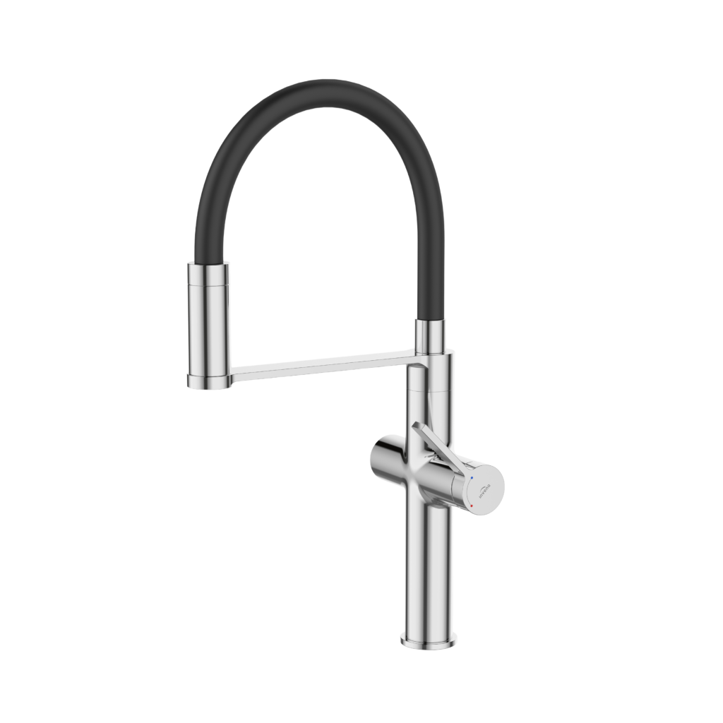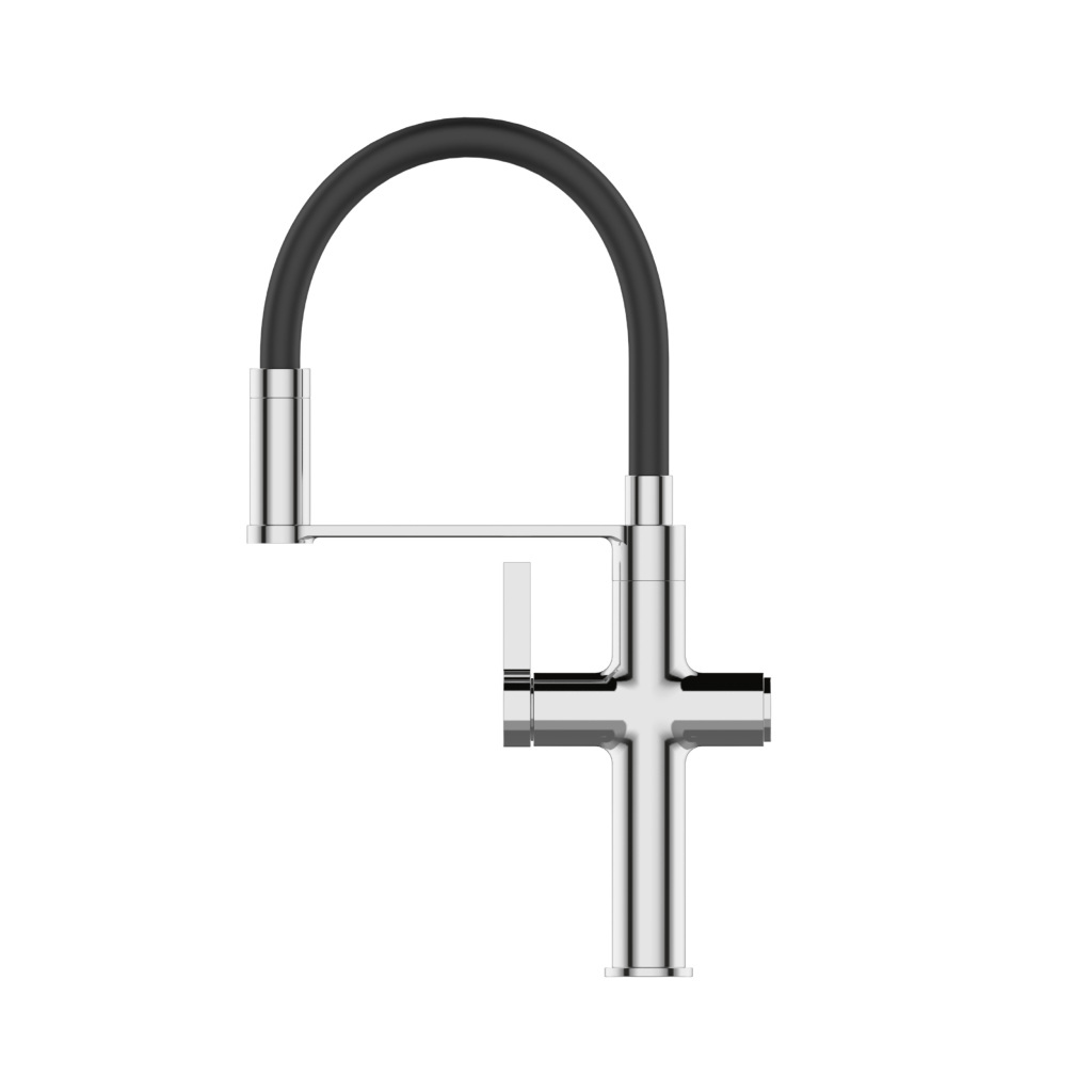 Štýlová a funkčná batéria PERISA v lesklom chróme s decentnými čiernymi prvkami je skvelou voľbou pre moderné kuchyne. Elegantný dizajn je doplnený praktickým systémom filtrácie vody, ktorý zaisťuje prístup k čistej a chutnej vode priamo z kohútika – bez nutnosti kupovať balenú.