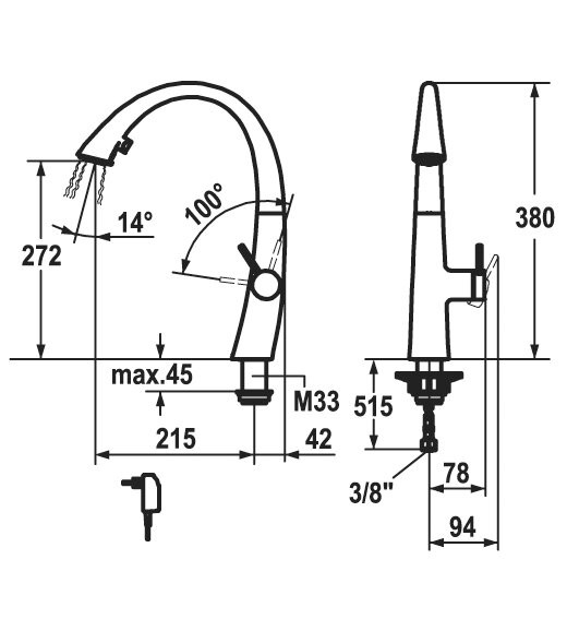 - Maximálny prietok: 9 l/min., sprcha 8 l/min. (3 bary)