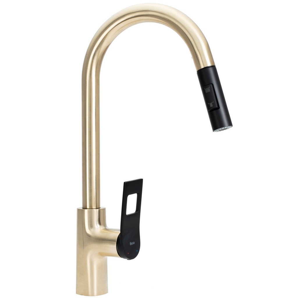 Základom každej funkčnej kuchyne je správna kuchynská batéria. Mosadzné telo tohto výrobku je zárukou odolnosti a stability batérie. Pokrytie zlatou kartáčovanou vrstvou robí batériu odolnú voči znečisteniu a čierna farba dodáva nevšedný vzhľad, ktorý bude dokonale ladiť s dekorom vašej kuchyne. Dlhodobú spoľahlivosť zaručuje použitie keramickej hlavice. Ohnutý výtok umožňuje nasmerovať prúd na ľubovoľné miesto. Na špičke výtoku je prepínač, ktorý umožňuje voliť medzi rozptýleným prúdom a koncentrovaným prúdom. Návod
