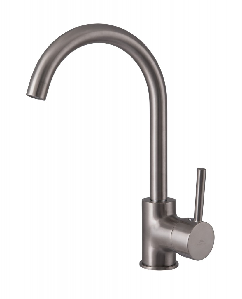 Drezová stojánková vodovodné batérie Olsen Spa ULTRA-33 s atraktívnym polkruhovým výtokovým ramenom a pútavo tvarovanou pákou umocní vysokú úroveň modernej kuchyne. Keramická kartuša 40mm.