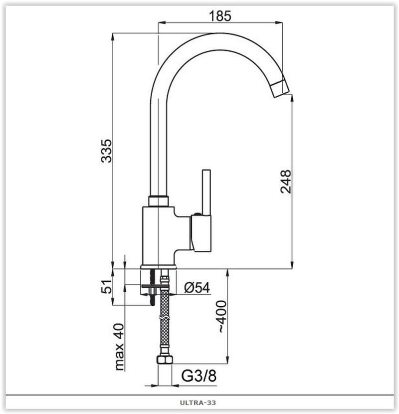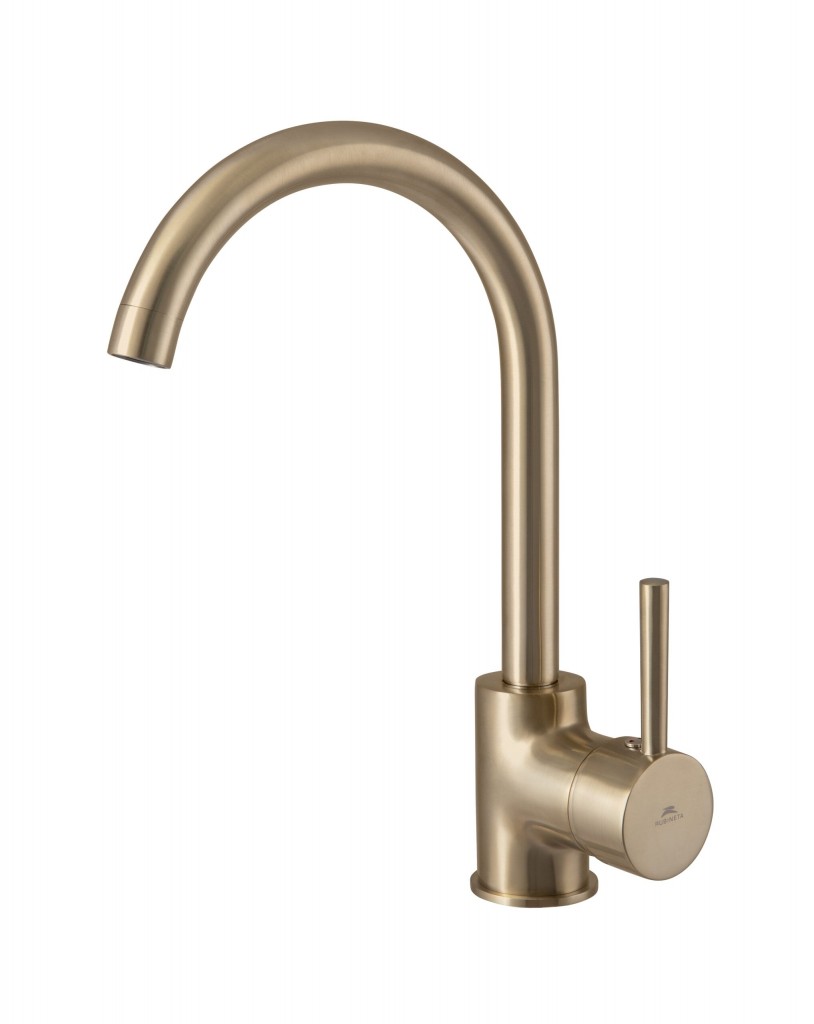 Drezová stojánková vodovodné batérie Olsen Spa ULTRA-33 s atraktívnym polkruhovým výtokovým ramenom a pútavo tvarovanou pákou umocní vysokú úroveň modernej kuchyne. Keramická kartuša 40mm.