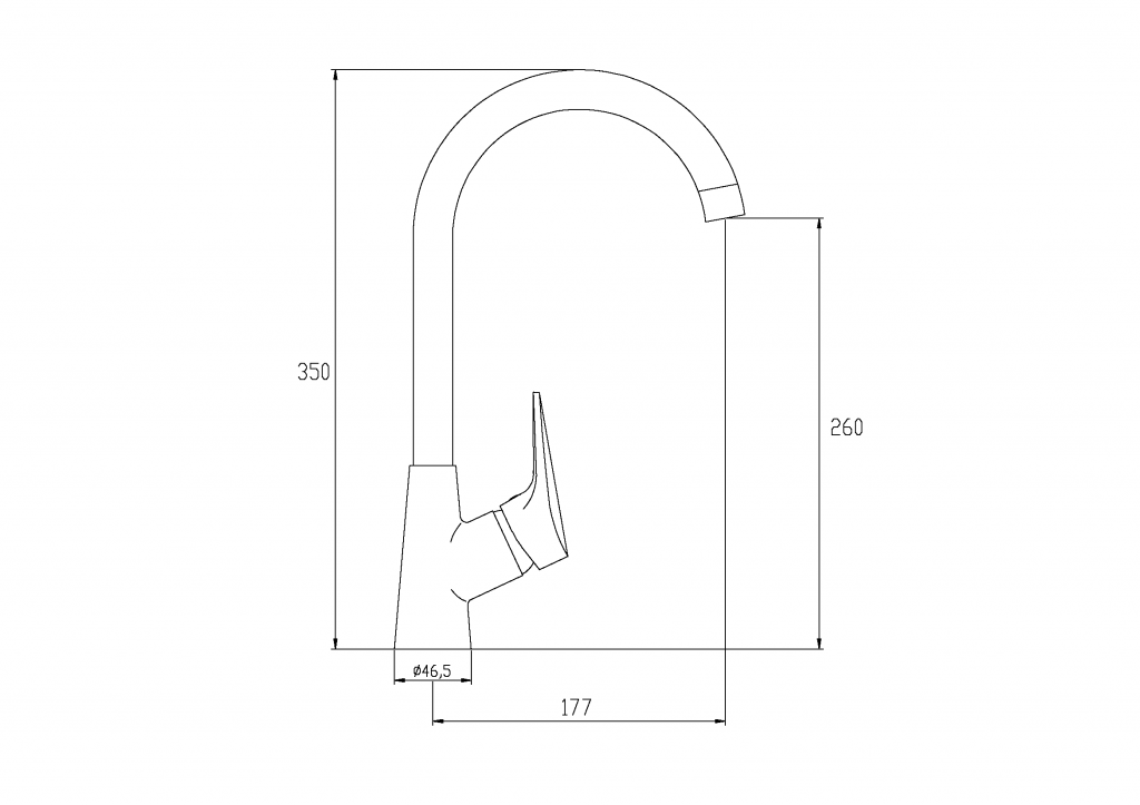 - dosah výtoku u tejto batérie je 177 mm, výška batérie je 350 mm a výška výtoku je 260 mm