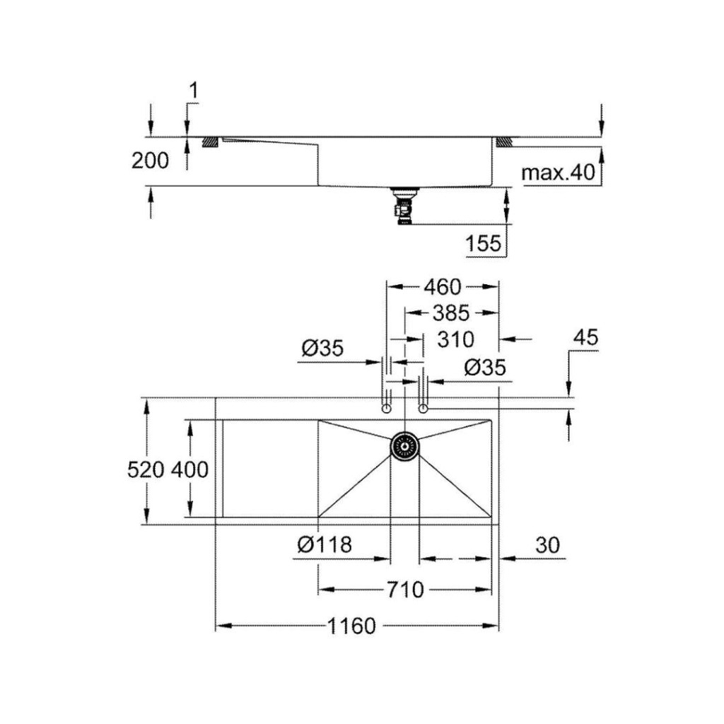 - materiál: kartáčovaná nerezová oceľ, hrúbka 1 mm