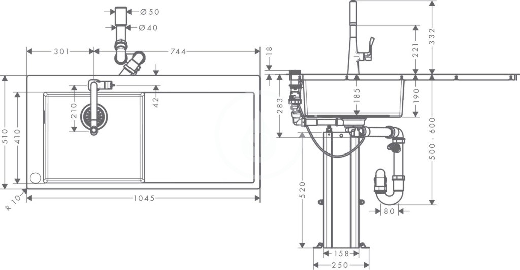 Drez je ručne zváraný - vďaka nerezovej ocele s hrúbkou 1 mm a zosilnené časti pre montáž batérie je vysoko stabilná. Nerezová oceľ je nielen pevná, ale aj odolná voči agresívnym látkam, ako sú napríklad ovocné kyseliny, tiež nepodlieha korózii, je hygienická a odoláva aj vysokým teplotám. Zapustená inštalácia vytvára súvislý prechod medzi drezom a pracovnou doskou. Prepad je diskrétne umiestnený na bočnej strane. Drez má minimalistický dizajn a vďaka jeho presným hranám a zaoblením rohov sa stáva kvalitným kuchynským doplnkom, ktorý bude slúžiť mnoho rokov.