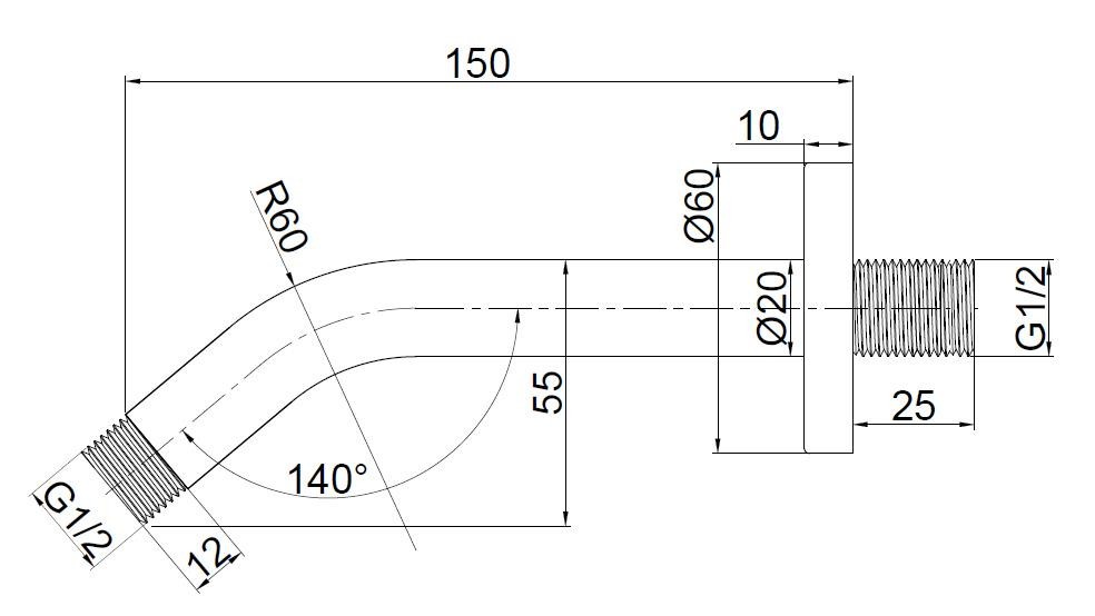 Držiak hlavovej sprchy je vyrobený z veľmi kvalitného materiálu, ktorý zaručuje veľmi dlhú životnosť a spoľahlivosť držiaku. Mierne zalomený držiak pre hlavové sprchy je určený pre inštaláciu z bočnej steny. Držiaky hlavové sprchy sú nevyhnutným doplnkom pre inštaláciu sprchy. Dĺžka držiaku je 150 mm a priemer 20 mm.