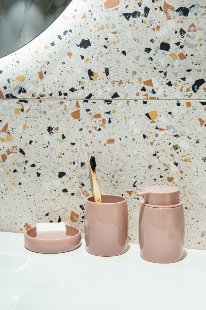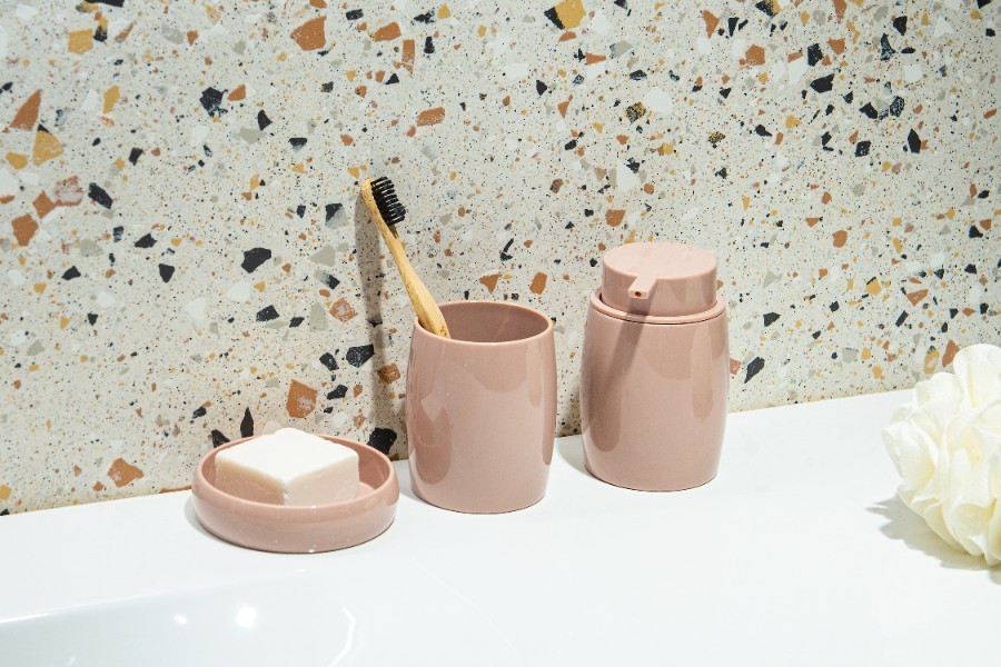 Hrnček na zubné kefky z kolekcie Larisa, ružový. Tlmený odtieň ružovej a minimalistický tvar vytvárajú oku lahodiacu harmóniu, ktorá sa bude dobre hodiť v mnohých kúpeľňových aranžmánoch. Na výrobu bol použitý kvalitný ABS plast, ktorý je pevný a odolný. Lesklý povrch sa veľmi ľahko udržuje v čistote a vždy vyzerá veľmi upravene. V našej ponuke sú aj ďalšie kúpeľňové doplnky z kolekcie Larisa.