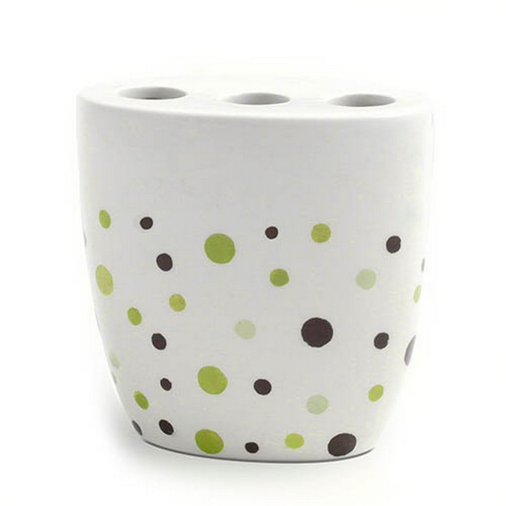 Keramický kelímok na zubné kefky. Zaujímavé bielo-zeleno-hnedej farby.