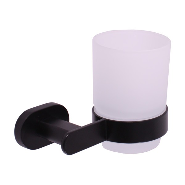 Elegantný čierny držiak s pieskovanou pohárikom sa skvelo hodí ku všetkým umývadlám. Pohárik vám každý deň spríjemní osobnú hygienu.