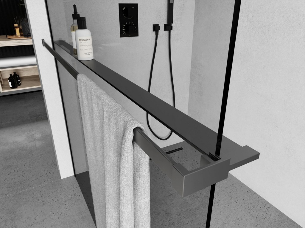 Praktickým doplnkom k sprchovým zástenám je originálny držiak na uteráky s poličkou na odkladanie kozmetických prípravkov. Hliníkovú policu je možné umiestniť do, vami ľubovoľne zvolenej výšky, čo uvítate, ak máte doma deti.