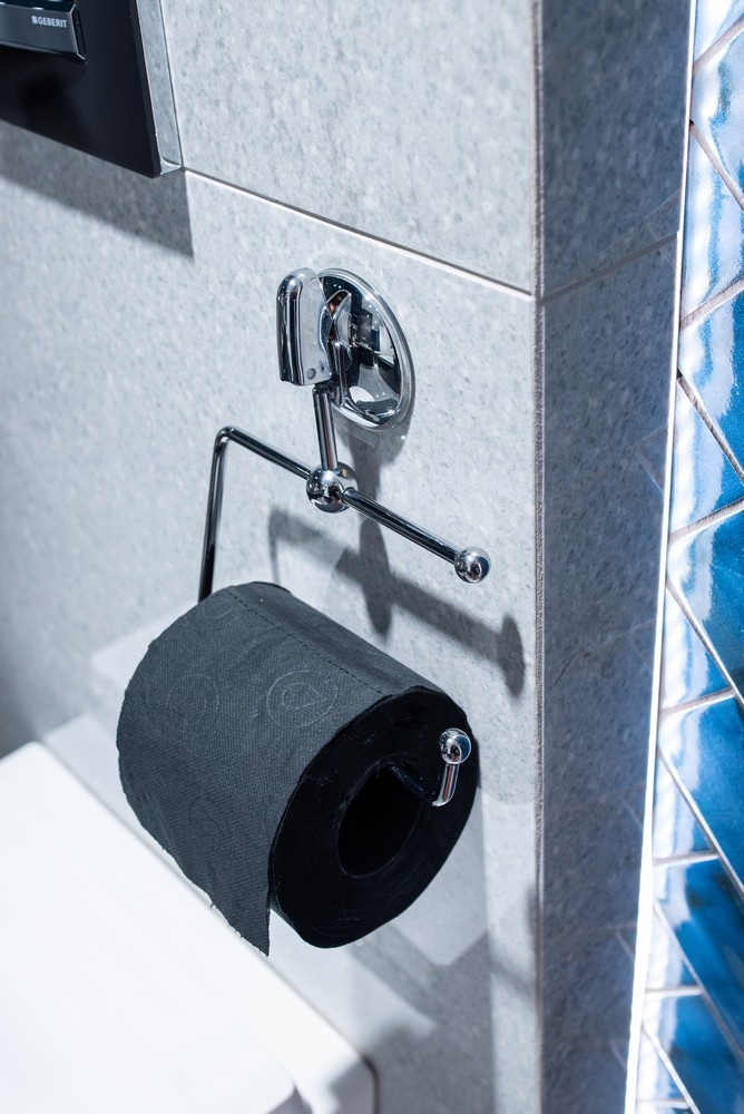 Praktický a jednoduchý držiak toaletného papiera nasadený na prísavku so zacvaknutím.