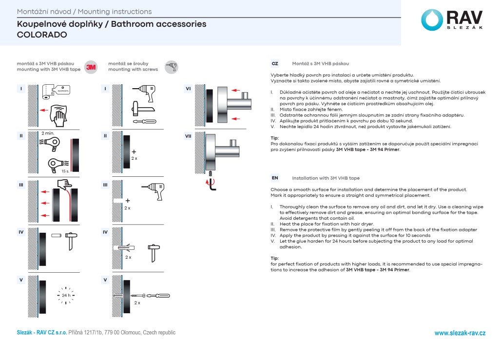 - pre držiak uterákov je potrebná montáž vŕtaním