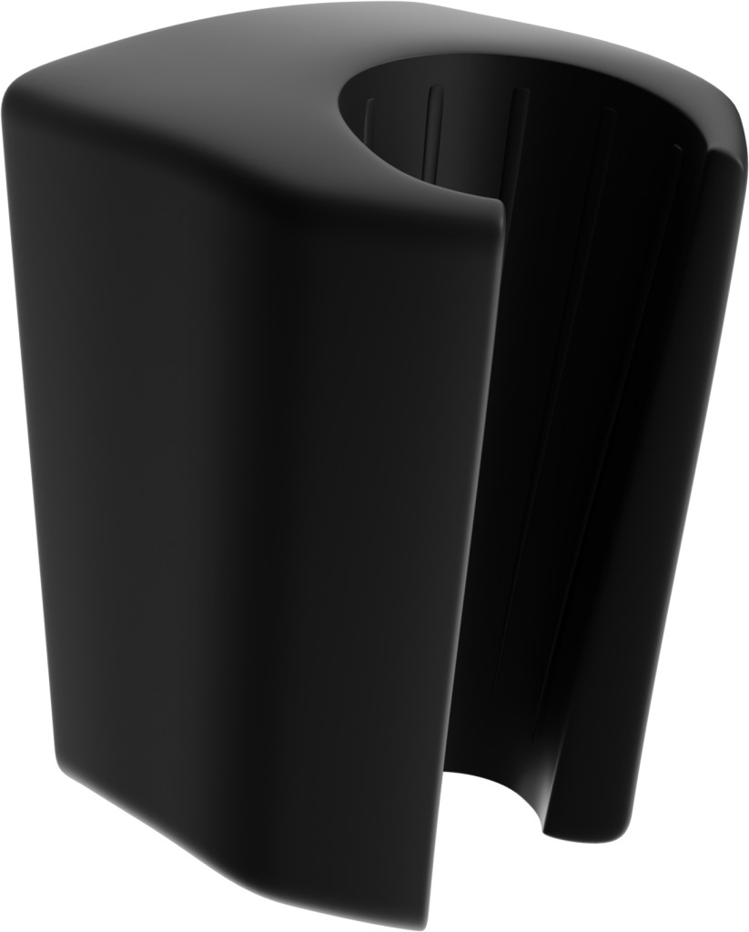 Nástenný držiak sprchy v plastovom prevedení s čiernou povrchovou úpravou.