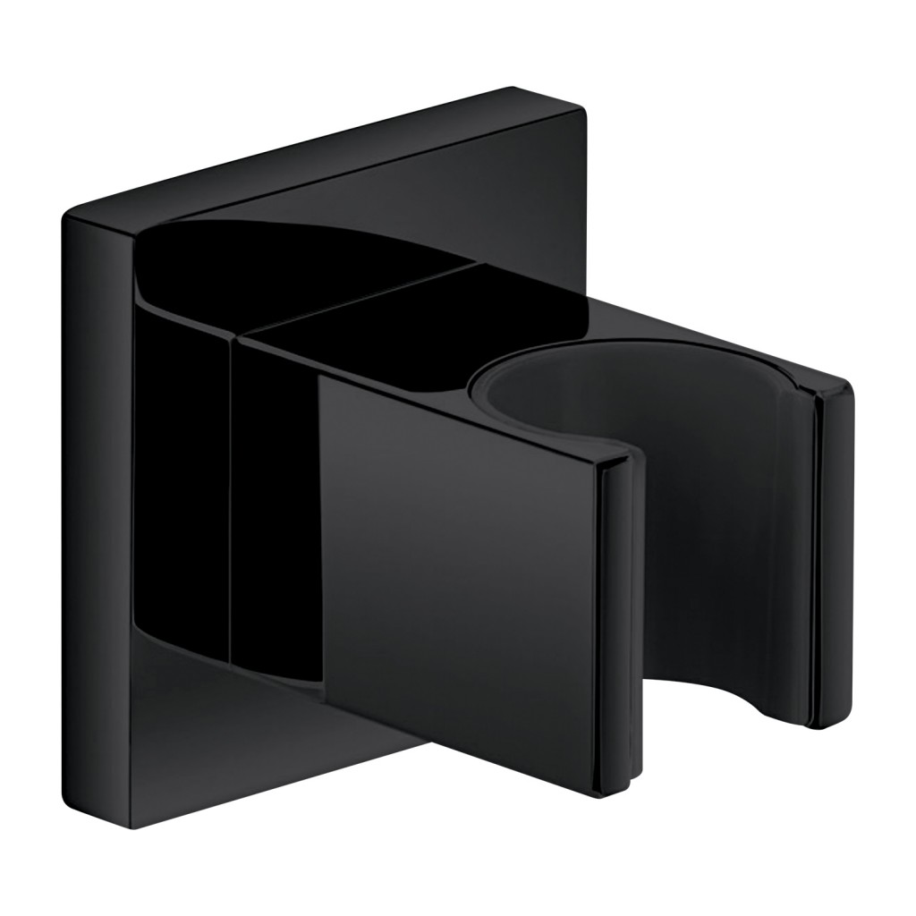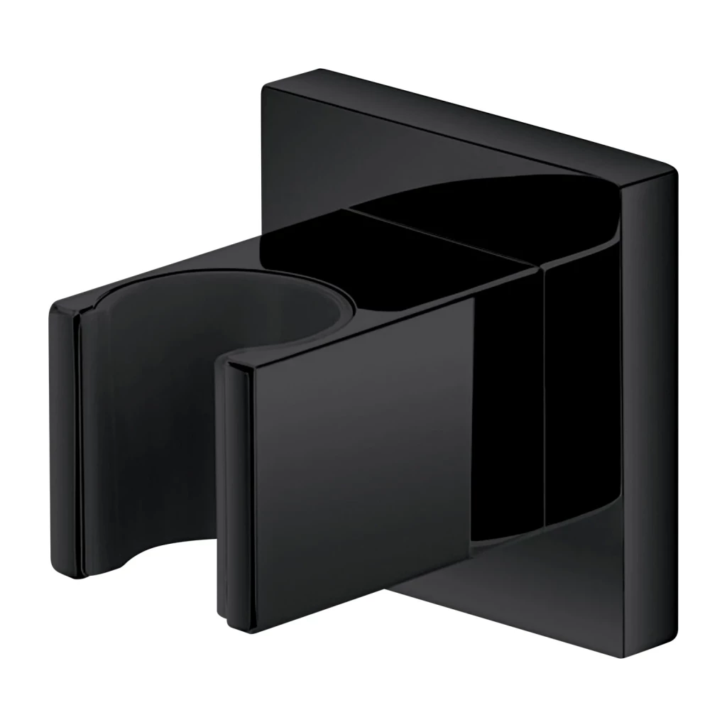 Nástenný mosadzný držiak ručnej sprchy hranatého tvaru s ochrannou vložkou. Držiak je dostupný vo farebných variantoch: čierna , zlato a chróm.