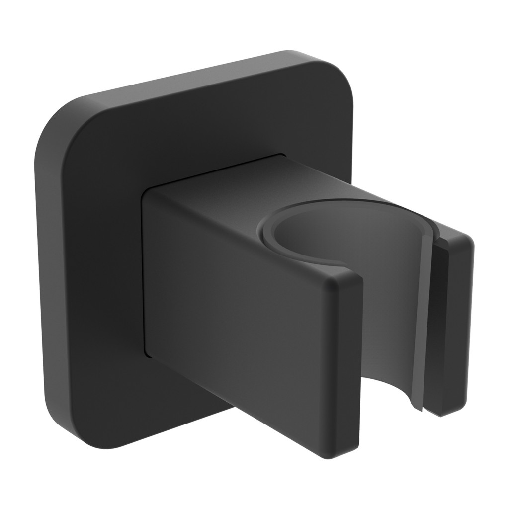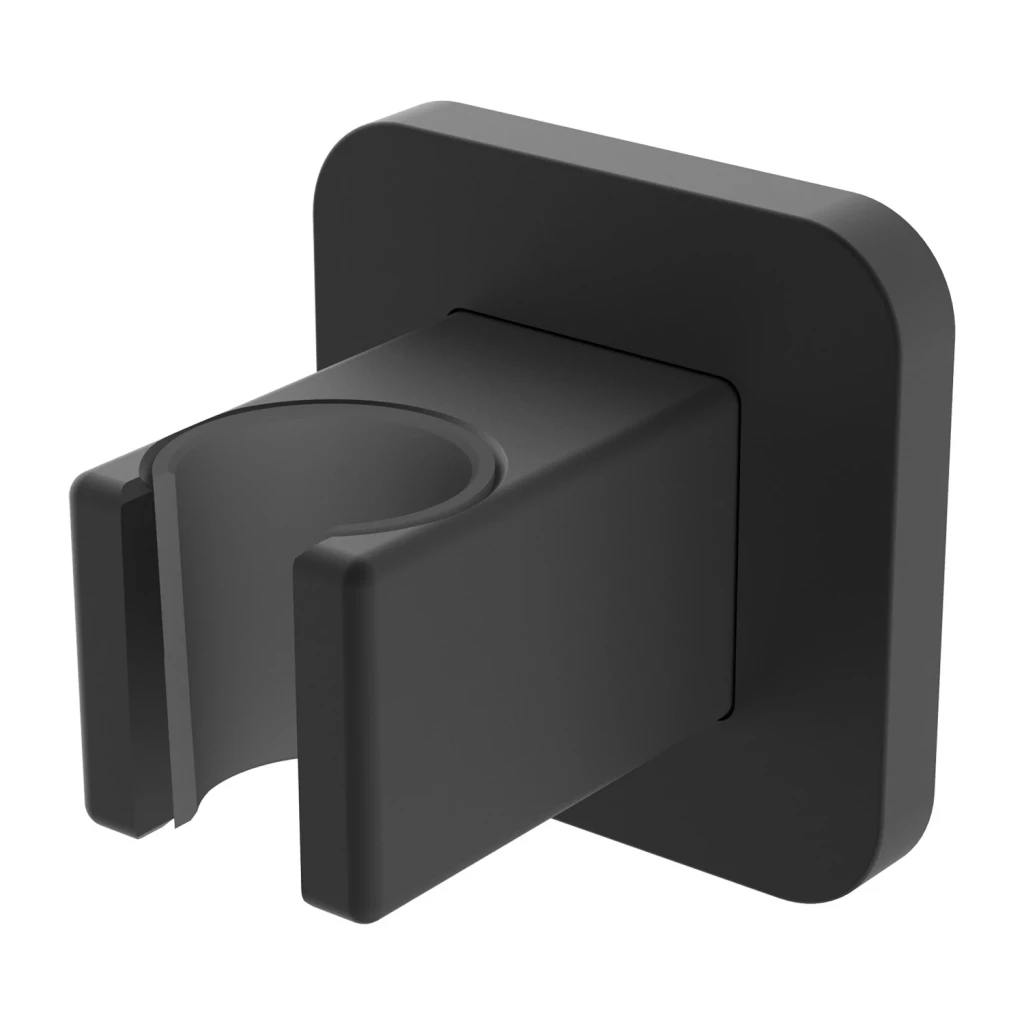 Nástenný mosadzný držiak ručnej sprchy hranatého tvaru s ochrannou vložkou.