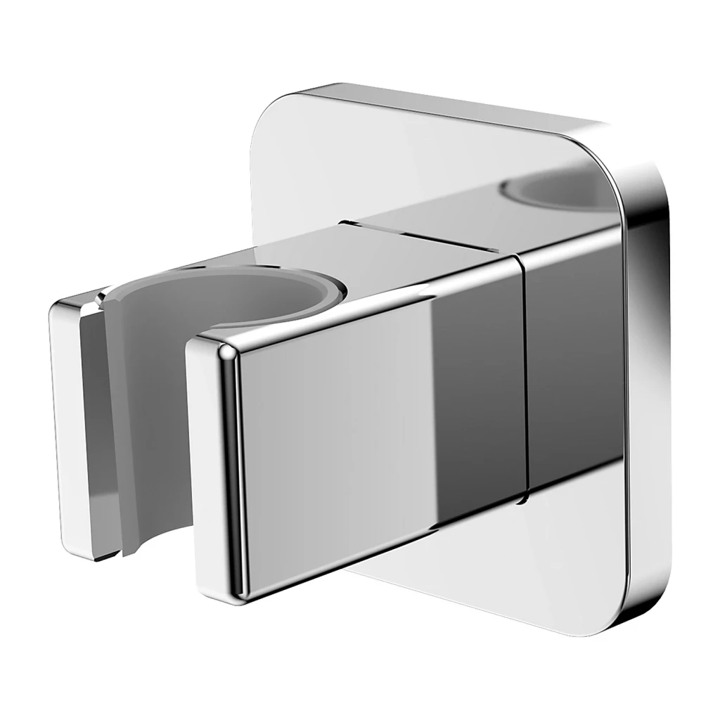 Nástenný mosadzný držiak ručnej sprchy hranatého tvaru s ochrannou vložkou.