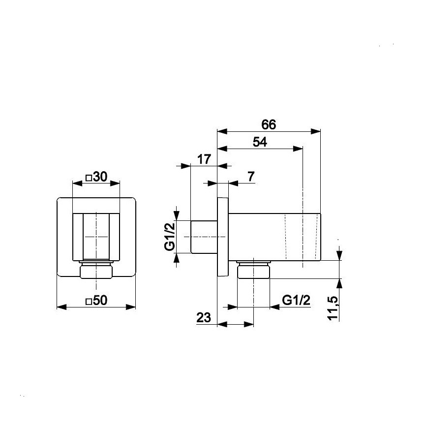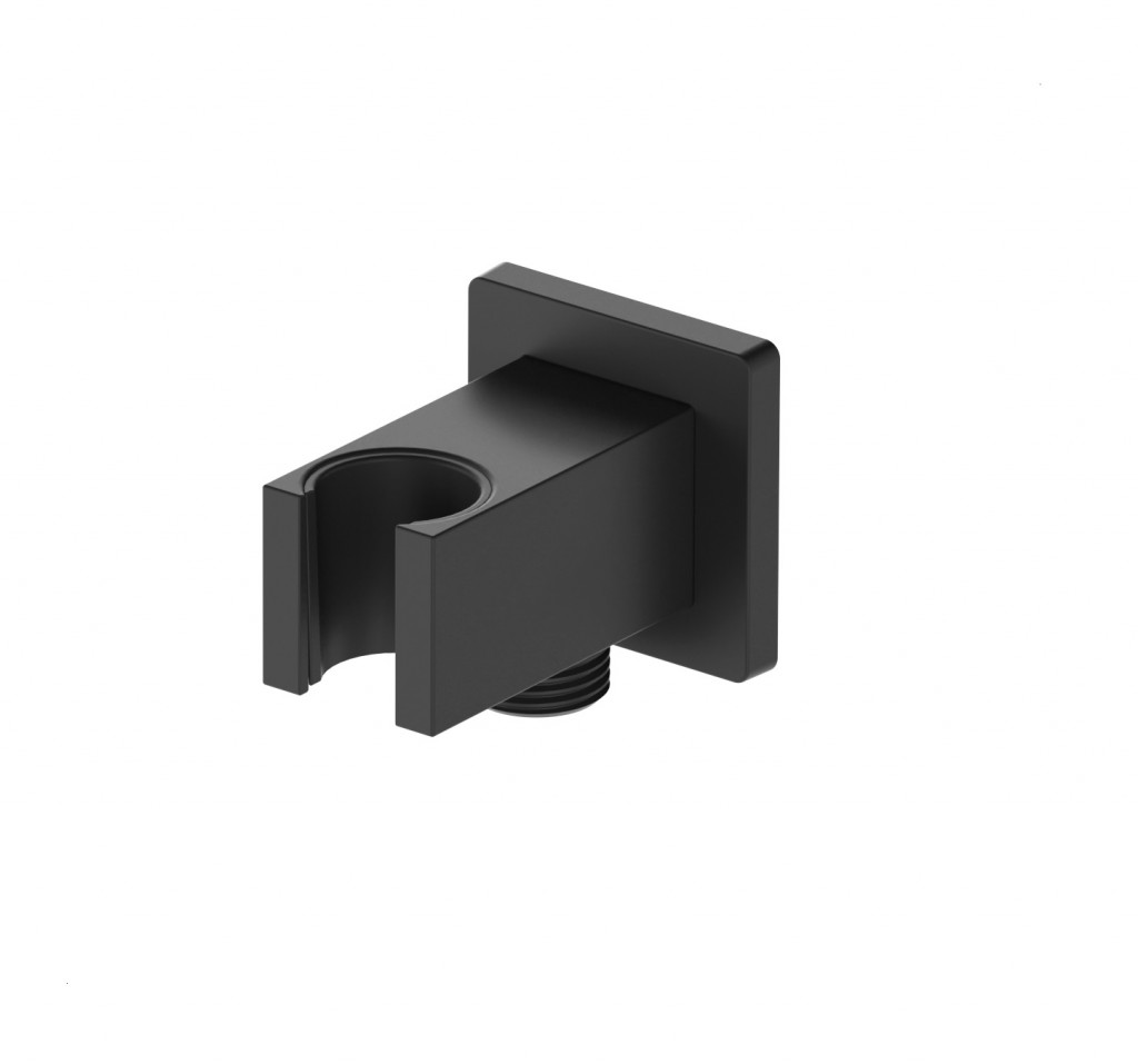 Podomietkový držiak ručnej sprchy série LOGON s vyústením štvorcového tvaru, vyrobený z mosadze. Dostupný je v dvoch farebných prevedeniach: chróm a čierna.
