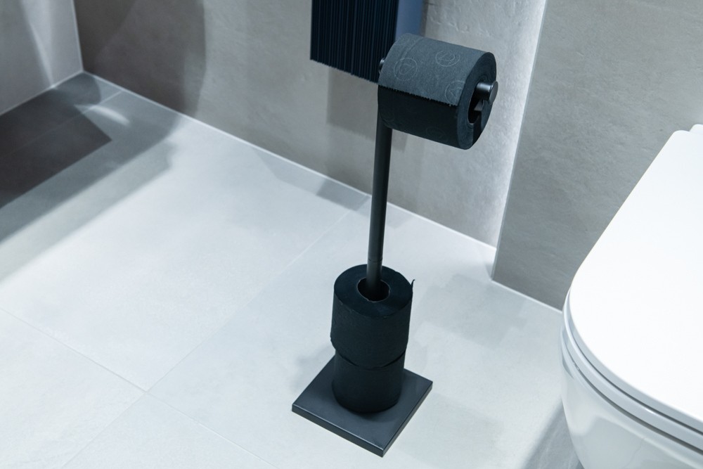 Voľne stojaci držiak toaletného papiera , ktorý je skvelý svojou jednoduchosťou a minimalistickým dizajnom. Vyrobený je z kvalitnej , čierno lakovanej ocele . Držiak-stojan pojme celkom 5 roliek toaletného papiera .