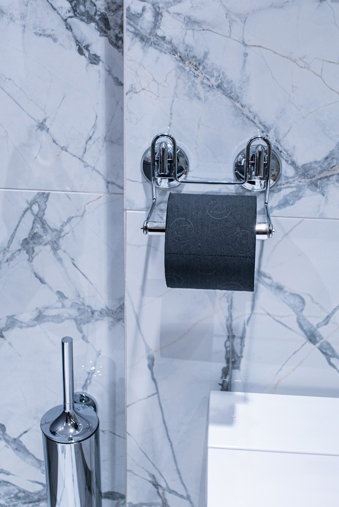 Držiak toaletného papiera sa jednoducho inštaluje pomocou špeciálnych prísaviek so zacvaknutím