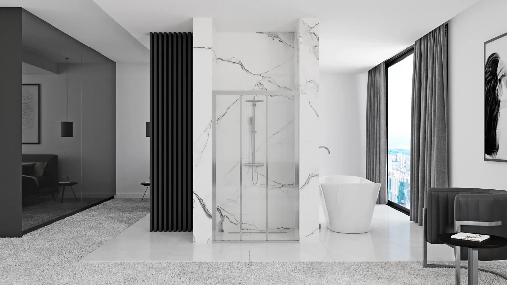 Rovnako tak sú dvere vhodné na montáž na vaničku, alebo priamo na dlažbu . Jediné, čo si skontrolujte, je správna šírka výklenku. Tá by mala byť medzi 111,5 a 121,5 cm. V tomto rozmedzí môžete celkovú šírku regulovať pomocou jednotlivých profilov.