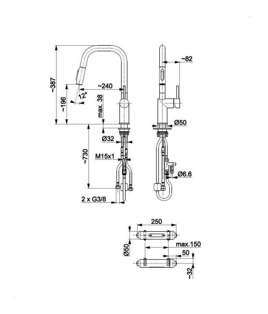 | Prietok vody [l/min] | míchaná voda 6 / filtrovaná voda 2.4 |
