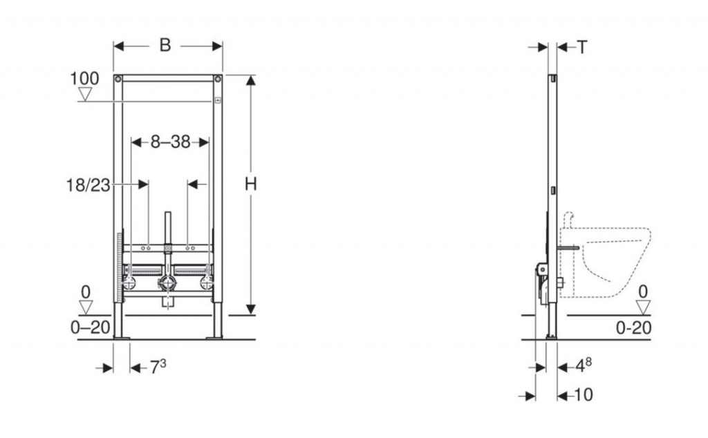 - Rozstup upevnenie závesného bidetu 18 alebo 23 cm