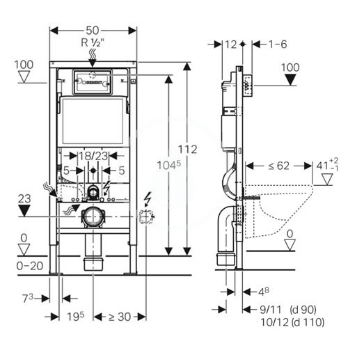- Pre montáž závesného WC so vzdialenosťou upevnenia 18 cm alebo 23 cm
