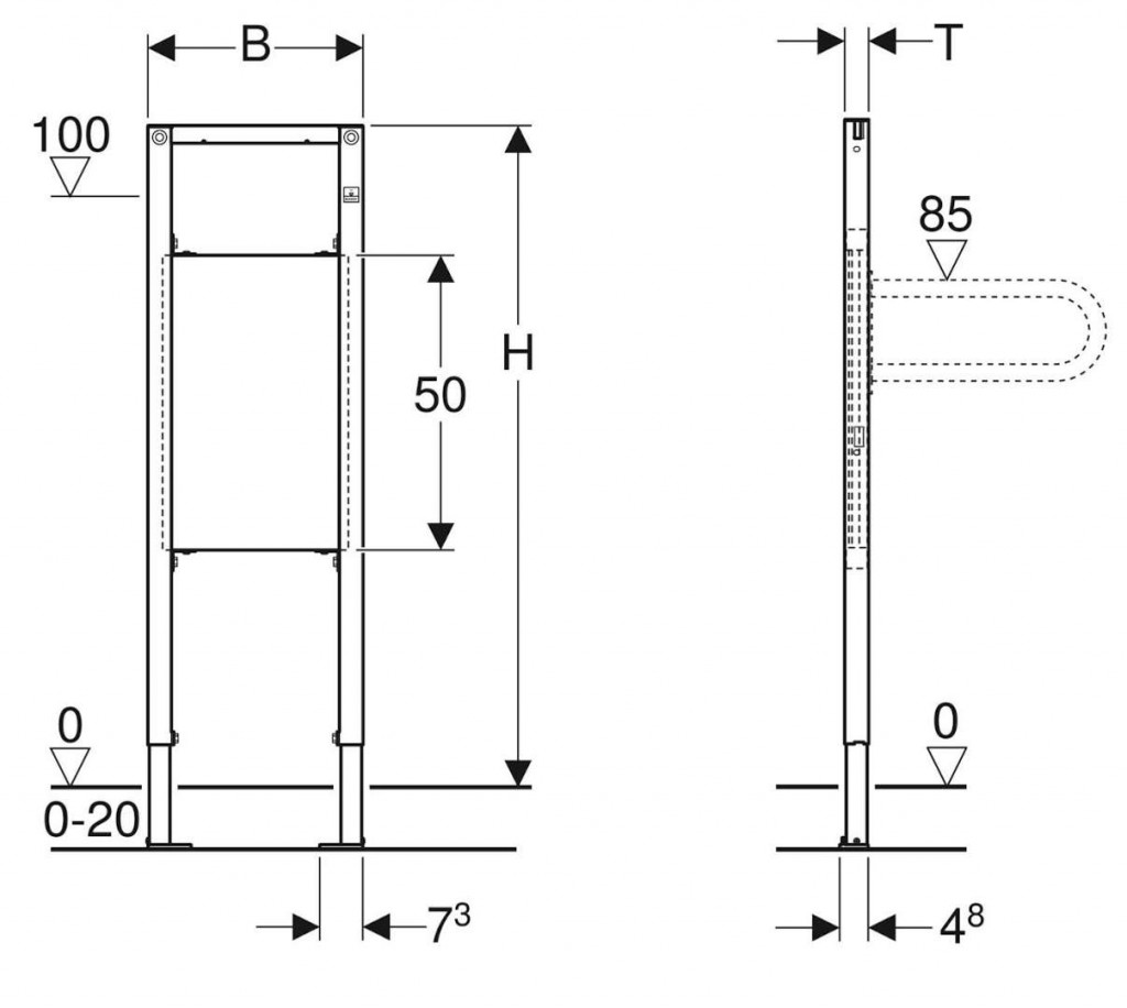 - Hĺbka pätnej dosky vhodná na montáž do U profilov UW 50 a UW 75 a do systémových profilov Geberit Duofix