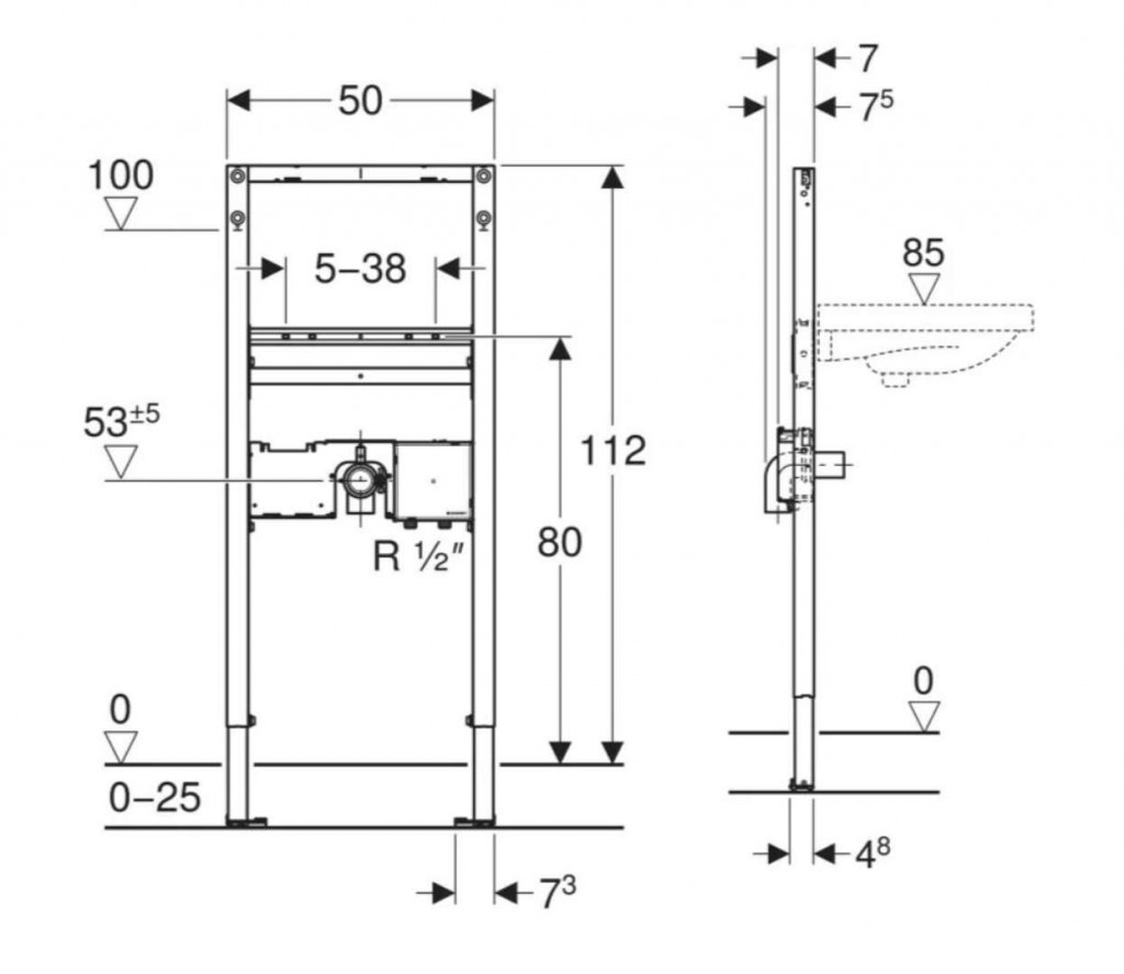 - Škatuľa pod omietku pre umývadlové armatúry Geberit, stojanková, s funkčným boxom pod omietku, predmontovaná