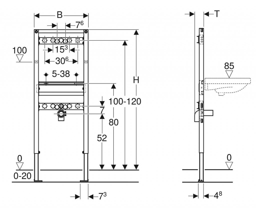 - Hĺbka pätnej dosky vhodná na montáž do U profilov UW 50 a UW 75 a do systémových profilov Geberit Duofix