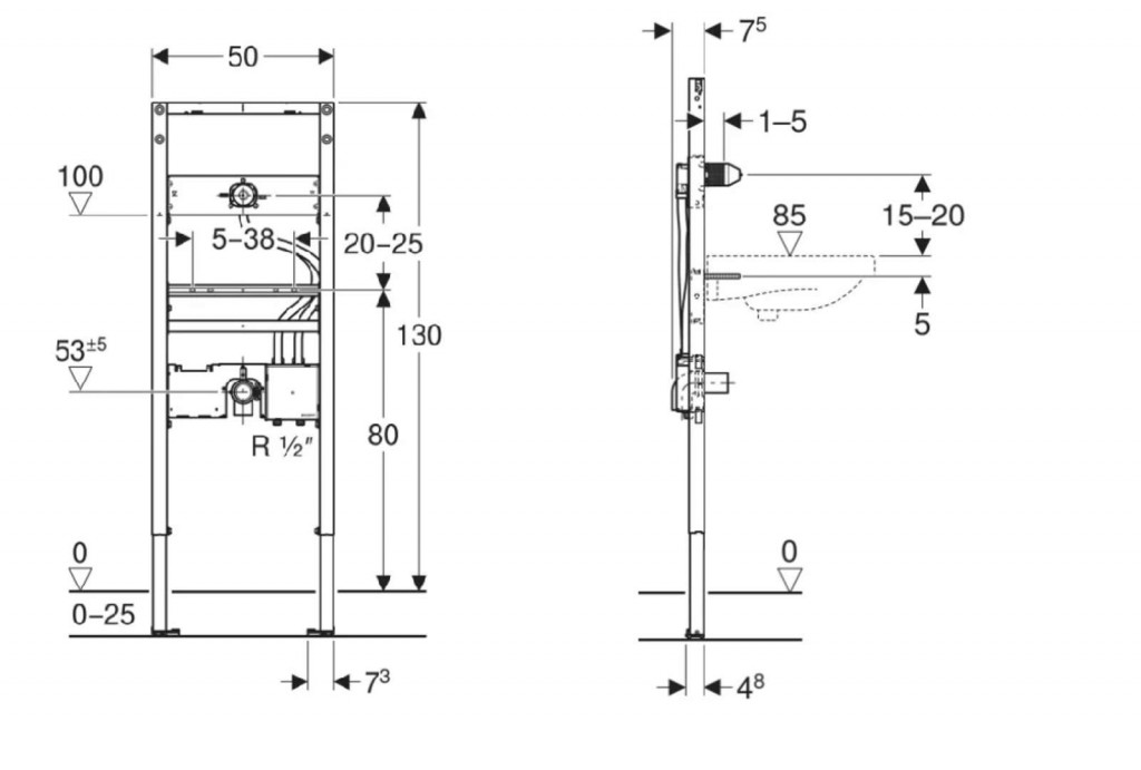 - Na montáž do systémových stien Geberit Duofix čiastočne vysokých alebo vysokých na výšku miestnosti