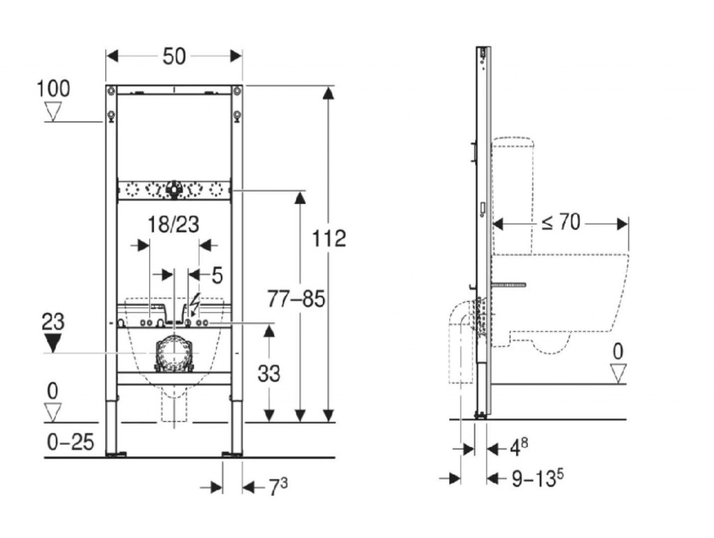 - Hĺbka pätnej dosky vhodná na montáž do U profilov UW 50 a UW 75 a do systémových profilov Geberit Duofix