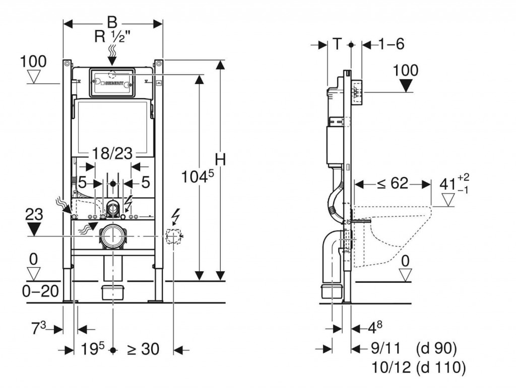 - vybavený rúrkovou chráničkou pre prívodné potrubie na pripojenie sprchovacích WC Geberit AquaClean