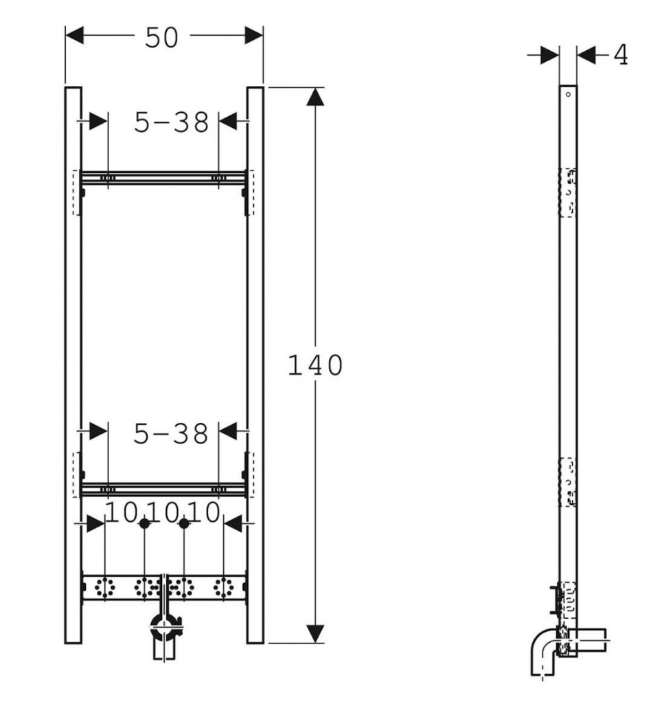 - Upevnenie pre pripojovacie koleno výškovo nastaviteľné a zvukovo izolované
